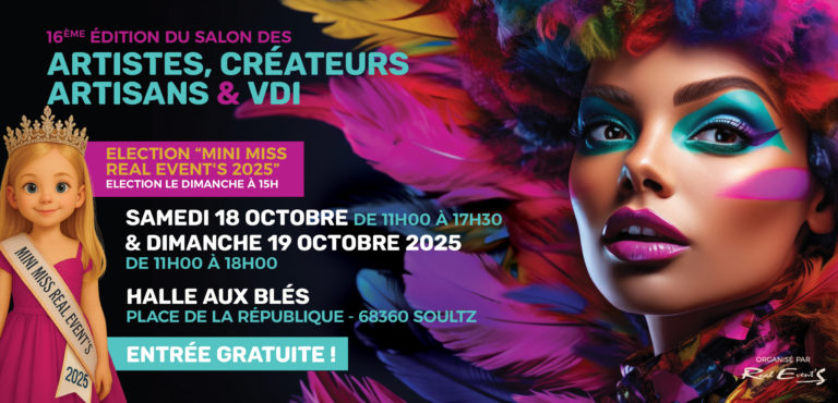 Les 18 et 19 octobre 2025, nous organisons la 16e édition de notre salon des artistes créateur et VDI 68. Avec une concentration d’artistes, artisan et vendeur indépendant nous allons vous faire découvrir leur savoir-faire. Une cascade de cadeau à gagner de la part de tous nos exposants, jeux gratuits et sans obligation d’achat.