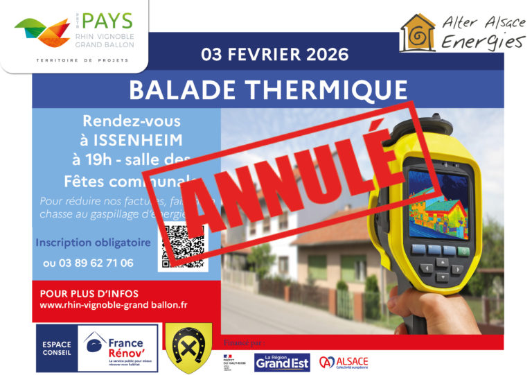 Suite au nombre trop faible de participants, la balade thermique prévue ce mardi 3 février à 19h à Issenheim est annulée.