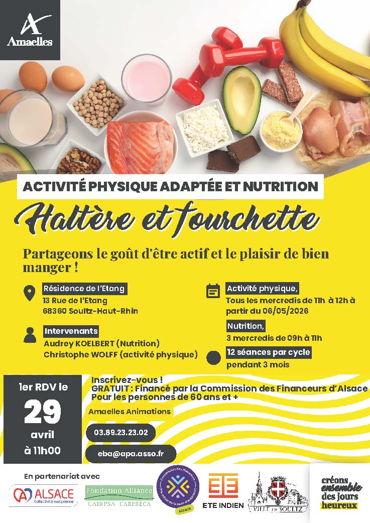 Mercredi 6 mai 2026, à la Résidence de l’Étang (13 rue de l’Étang – Soultz) puis tous les mercredis de 11h à 12h (12 séances sur 3 mois).