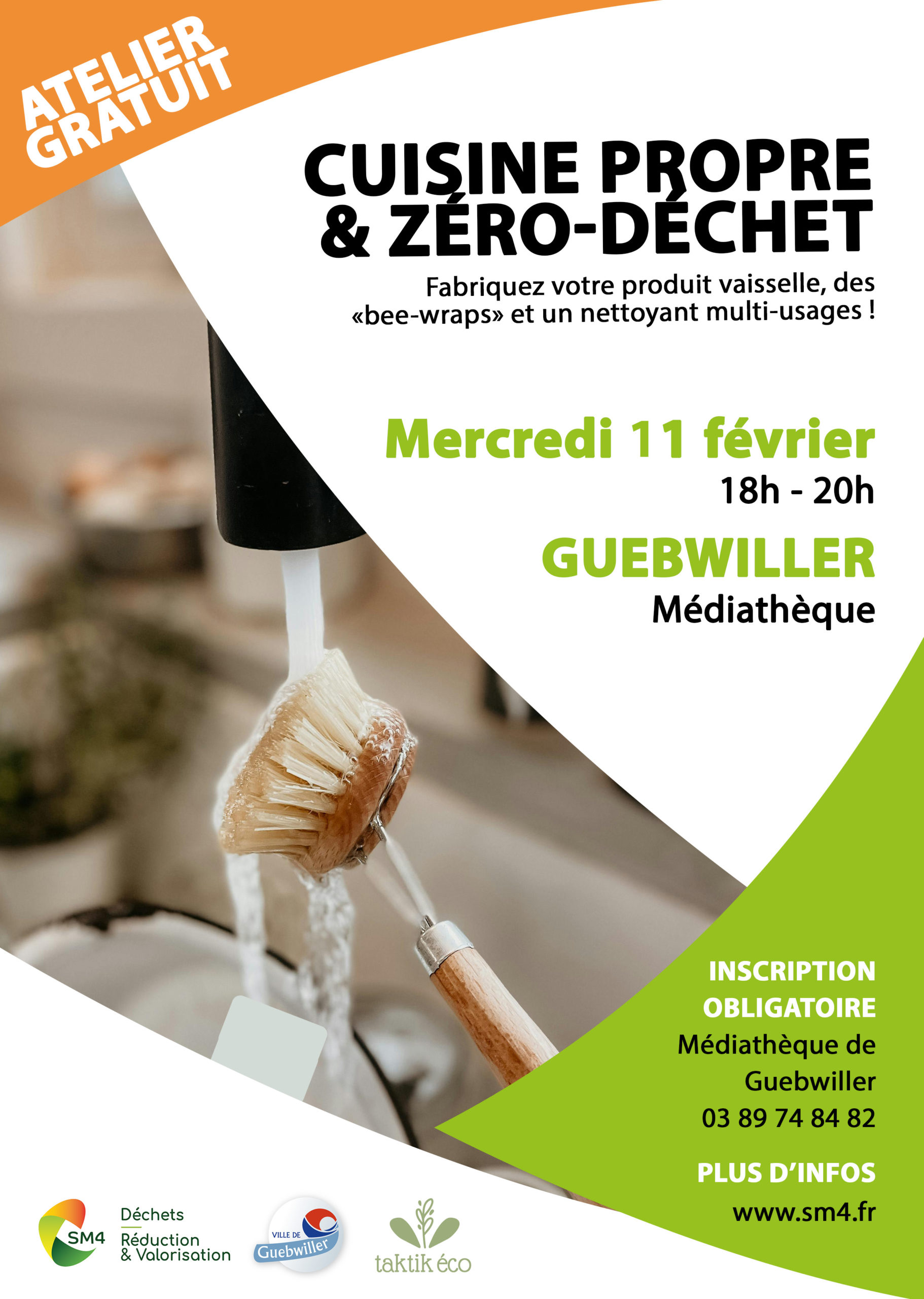 Le SM4 organise un atelier zéro-déchet « Cuisine propre et zéro-déchet » en partenariat avec la médiathèque de Guebwiller, le mercredi 11 février, de 18h à 20h.