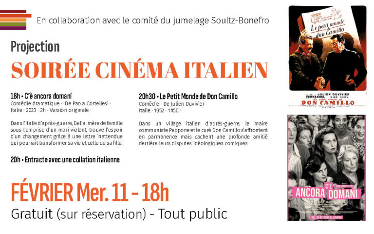 Lien pour le film Le Petit Monde de Don Camillo à 20h30 : https://www.billetweb.fr/soiree-cinema-italien-2e-partie1
